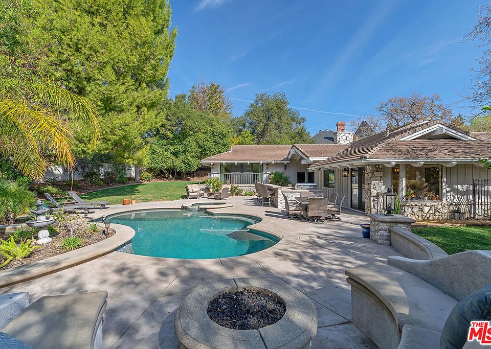 Commanding Presence in North Ranch - A True Entertainer's Estate. Located in one of Westlake Village's most prestigious neighborhoods, this bold and beautifully designed single-story California Ranch home sits atop a 21,000+ square foot knoll, offering both privacy and breathtaking views of towering California Oaks. Step inside and experience the impressive open floor plan, where high beamed ceilings and a dramatic wall of glass blur the line between indoor and outdoor living. Natural light floods the space, highlighting the home's strong architectural lines and refined details. With 4 bedrooms and 3.5 bathrooms, this home is built for both function and style. The Primary Suite is a true retreat, featuring a fireplace, a private sitting area with poolside views, dual walk-in closets, and a spa-inspired bathroom with a soaking tub and oversized shower. The chef's kitchen is built for those who take cooking seriouslyequipped with premium stainless steel appliances, a massive island, a walk-in pantry, and a casual dining area that opens to the backyard. A formal living room with a fireplace and an expansive dining room provide the perfect setting for hosting. The family room, with another fireplace and soaring ceilings, leads directly to the outdoor entertainment space through sleek sliding glass doors.And the backyard? An entertainer's dream. A built-in outdoor kitchen anchors the space, overlooking the pool, spa, dining, and lounge areas. At the end of the pool, a gas fire pit creates the ultimate spot to relax and unwind. Rounding out the property is a direct-access oversized 3-car garage, ensuring security, privacy and convenience. This is more than a home, it's a statement. Experience the best of California living in North Ranch.
