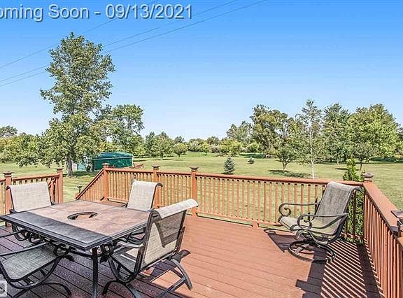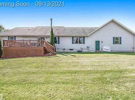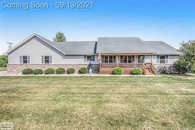 10 acres on paved road with Natural gas!!! Picture yourself sitting on your Trex deck with your electric awning while watching the wild life in your own backyard. Or having your morning coffee on your covered front porch. This home features open concept with cathedral ceilings. Kitchen features oak cabinets with lots of counter space and stainless steal appliances that stay with home. Great room has gas fireplace. There is new carpet throughout Great room and Dining room put in this past year. Master bedroom has it's own bath with jetted tub and separate shower also a walk in closet. You will not want to miss the huge 2013 sq. ft. basement with poured walls and 10 ft. ceiling with plumbing all set for a bathroom. There is a Amish built shed and also a steel building with a roll up door for all your storage needs.