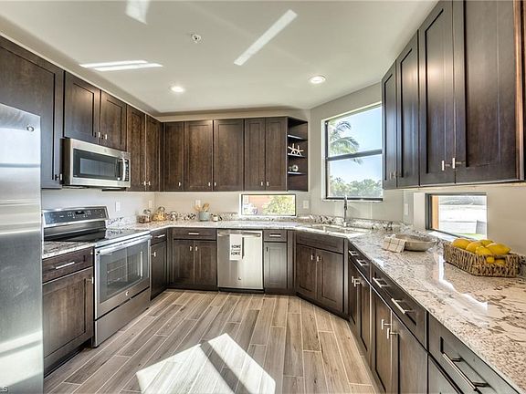 NEW CONSTRUCTION COACH HOME in a fantastic Ft Myers location!! 3 bedrooms 2 full baths 2 car garage & large screened lanai. Model unit, loaded with upgrades! Abundant space & enjoyment of the outdoors. Granite kitchen, 42" cabinets, GE stainless steel appliances, stackable sliding glass doors, impact glass, extra large wrap around lanai, and LED lighting all come standard! Floorplan has been updated to include an open concept kitchen to dining & living area. Prentiss Pointe offers maintenance free living, a community pool & spa, clubhouse, meeting room, billiards room, fitness room, lighted tennis/pickleball courts, and gated entry all in a strong and established HOA. Fabulous location, minutes to shopping, restaurants, Health Park hospital, and all that SWFL has to offer. Amazing proximity to beaches & the islands! There is no comparable new construction with this location. Click on the weblink to see 3D tour of the home!