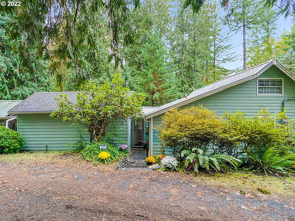 Opportunity knocks near the Sandy River! Rare, serene, wondrously forested 1.21-acre lot only 1 mile from town. Renovate this classic home or start fresh! Homey living room warmed by pellet stove. Kitchen features plenty of storage + great view. Formal dining overlooks nature. Light & bright throughout, vinyl windows, new appliances. Large carport & multiple sheds/shop. Tall trees create a private paradise w/ plenty of space to spread out & entertain.