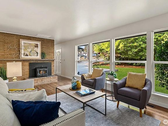 Beautifully designed 3-bedroom Kenmore home. Family room features a wall of windows to let in an abundance of light and a cozy woodstove for ultimate warmth this winter. Kitchen with eating space, skylight, granite tile countertops and stainless steel appliances. Three bedrooms and an updated full bath. Spacious fenced in backyard perfect for fall activities and relaxing and includes a shed for additional storage. New interior and exterior paint, new roof, hardwood flooring throughout, AC, attached heated garage and RV or boat parking! Easy access to I-405, WA 522, Lake Washington, parks and more! Northshore School district. Renter pays for all utilities, last month rent due upon signing.