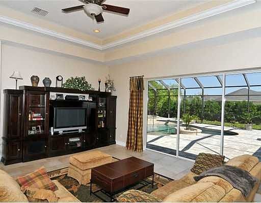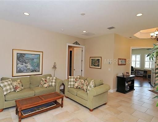 Absolutely immaculate 4/5 bedroom single story home with over 3,800 sq feet air-conditioned living space and oversized 3 car garage. Custom built with quality in mind. A fabulous gourmet kitchen with solid wood cabinets with full pull out drawers, huge center granite top island, gas cook top and spacious pantry. Details include crown molding, tray ceilings, indirect lighting, built-in recessed speakers for surround sound, custom blinds and window treatments, 8' doors throughout, wired for HD. The split bedroom plan offers a spacious master bedroom with 2 walk-in closets and beautifully detailed bath with tiled walk-in shower and separate jetted tub. Careful thought was given to the floor plan with an innovative idea of 2 bedrooms sharing a bath with dual sinks and private shower/toilet area as well as the bonus of an adjoined play room. Additionally, there is an office/den and an over sized bonus room with wood coffered ceilings ... perfect for a game room with pool table. Sliders are appropriately placed to overlook the amazing outdoor living space. HUGE does not begin to describe it. Plenty of screened area to enjoy the best of Florida outdoor living. Brick paver drive and lanai area. Self-adjusting water level in the heated pool and spa with planter. Enjoy barbecuing on the built-in grill while overlooking the beautiful nature preserve behind ... ultimate privacy. Complete list of upgrades, construction and energy efficient features available at the property.