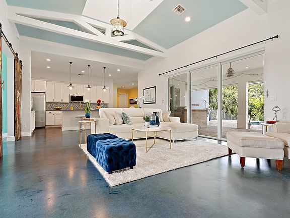 This Key West inspired home on 1.5 acre lot built by award winning builder, boasts over 5,000 total sqft including attached Guest house and a separate pool house with Golf cart garage. Quality construction includes impact windows and doors, standing seam metal roof, Icyene spray foam insulation, energy efficient appliances, twin tank water system with separate sulfur removal, 8 house camera system with DVR and remote viewing access via app, 10 circuit transfer switch and smart home technology. Custom kitchen with polished concrete flooring, stainless steel appliances makes entertaining a breeze. All bathrooms feature pebble tile flooring and decorative glass wall features. The attached guest house has its own private entrance and includes a full second kitchen, 1 bedroom, 1 bathroom and