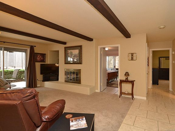 Easy living awaits you at this adorable first floor, 1 story with 2 patios, a sunroom and pond views! One of the most desirable units w/covered parking & just steps from the front door! Tiled covered patio, newer paint, quality carpet, tile in kitchen & dining & remodeled tiled shower. Two closets in one of the bedrooms! All appliances included! Immaculate & move in ready! Live the good life! Walk the trails, join the Indian Springs Country Club - Dining, Tennis, Pool & Fitness Center!