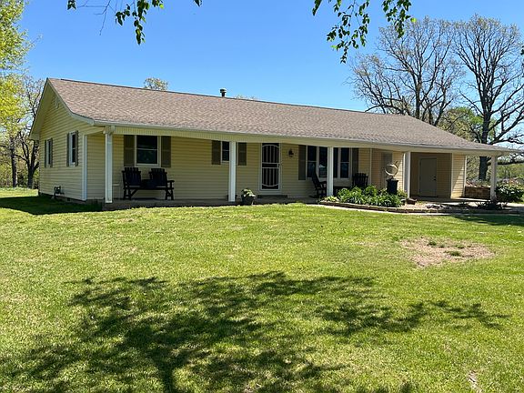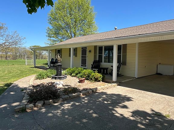 Beautiful home at the edge of Cassville with rolling 20 acres m/l, 2 large shop buildings, landscaping and yard is gorgeous with raised rock flower beds, Gated entry with lit driveway, paved circle , covered front porch, newer hvac system All of this is just the outside! Inside this luscious home you are met with a spacious open floor plan, original hardwood floors under the carpet, newer kitchen cabinetry, luxurious tile walk in shower, and tons of other updates. 3rd bedroom is non-conforming with no closet. If you aren't in need of the 3rd bedroom it would make a great closed in porch with tons of windows and views to die for!
