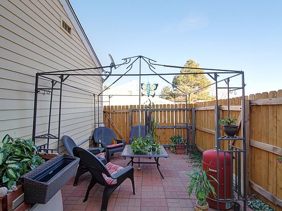 Fantastic ranch-style, end-unit townhome in a quiet cul-de-sac, and near Sunburst Park! Your future home offers 2 Bedrooms, and 1 Bathroom, and 1-car attached garage. Living Room features a cozy, rare wood-burning fireplace. Dining Room leads to Kitchen and back yard2014;perfect for indoor/outdoor entertaining! Full fenced back yard/patio has lots of room patio furniture, grill, and pets. ALL FURNITURE IN THE HOME IS NEGOTIABLE! Walk to Sunburst Park, with huge play park and sports2019; fields