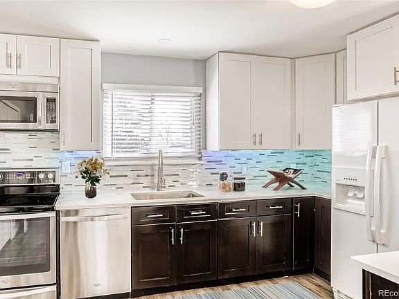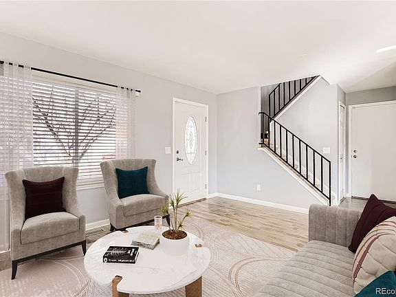 Beautifully updated 3-bedroom 2-bathroom two story townhome nestled in a cozy neighborhood located in cherry creek school district. This home features an open floor plan on the main level with a wood burning fireplace perfect for getting cozy on those chilly nights, a large primary bedroom with a large closet and two additional bedrooms. Beautifully updated kitchen with quartz counter tops and stainless-steel appliances. Bathrooms completely updated. The backyard features a patio and a private fence great for summertime get togethers. Everything newly renovated in 2018 per previous homeowner. New furnace in 2018, and new Central air conditioning in 2021. Electrical panel replaced in 2014 per previous homeowner. New garage opener. No living space shared walls, just garage, end unit. This home is move in ready and well maintained. Note: Photos with furnishings have been virtually staged to show a different view and alternate decorating ideas. Buyer and Buyers agent to verify all information. Seller reserves the right to accept an offer at anytime.
