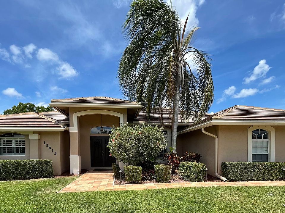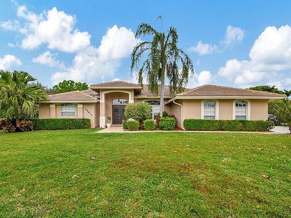 Located on a quiet cul-de-sac in the much sought after Meadow Wood neighborhood. Spacious 4 bedroom, 3 bathroom, pool & spa (heated) home on the canal. Kitchen is a chefs delight, with ample composite granite counter space, stainless steel appliances, and double wall ovens. Split bedroom plan, neutral colors throughout, new LVP floors in all 4 bedrooms. Garage boasts epoxy floors. Outdoor living space is a private, peaceful oasis, oversized deck and mature landscaping. Lot is over 1/2 acre and plenty of space on the long driveway to park multiple vehicles. New roof in 2019. ''A'' rated schools, including Binks Forest Elementary. Close to WEF, restaurants, hospitals, PBIA and 18 minutes to beach. All measurements are approximate and subject to errors and omissions