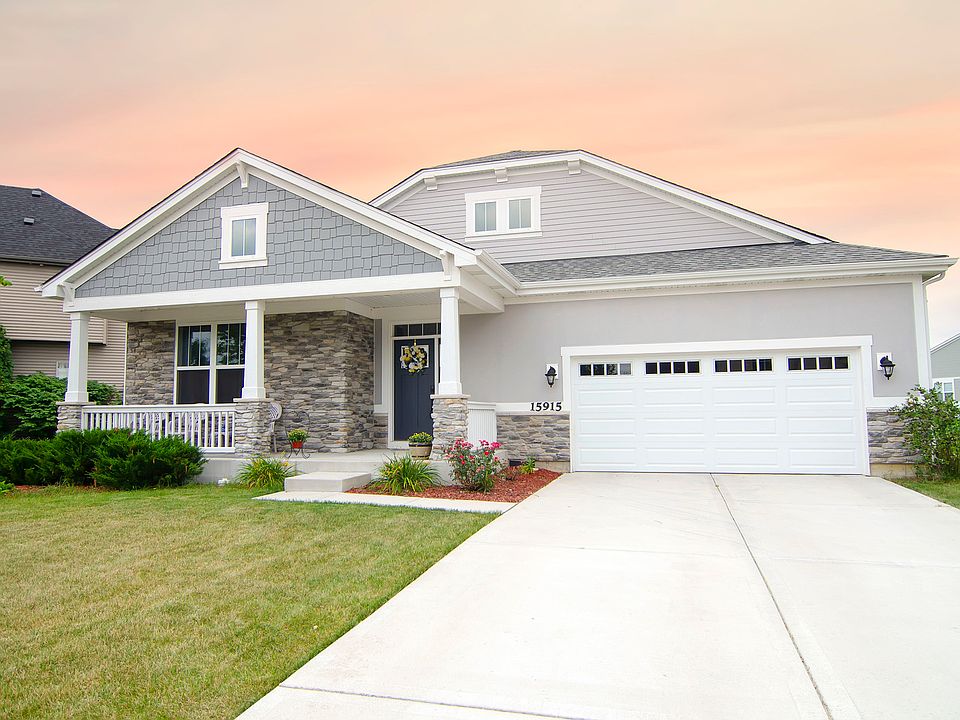 Craftsman Style ranch ready now! Why wait for new construction when this one is so perfect?! This beautiful 3 bedroom 2 bath home is located in the North Point section of Springbank. The private aquatic center makes it feel like you're on vacation all summer long and features a zero depth pool with sand volleyball court, water slides, concessions, and gated splash playground. The open concept main living space is awesome for entertaining. The kitchen features a walk-in pantry, over-sized island, granite counter tops, extended eating area, and stainless steel appliances. Tall 9 ft. ceilings with ceiling fans throughout, hardwood floors in the kitchen and foyer, concrete driveway and covered back patio. Newly installed maintenance-free vinyl fence. The extended foyer and open staircase lead to the huge deep pour FULL basement with rough-in for additional bath. Whole home WiFi Booster. The private master suite features a luxury walk-in shower and closet. Sit out on the front porch and and watch the sunsets all year long. This home is located just minutes from Mather Woods, the DuPage River, and downtown Plainfield. You can't go wrong with a ranch priced this right!