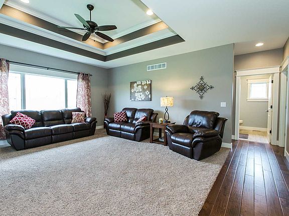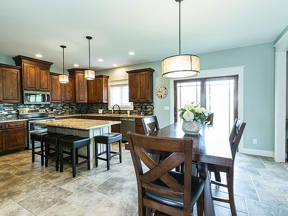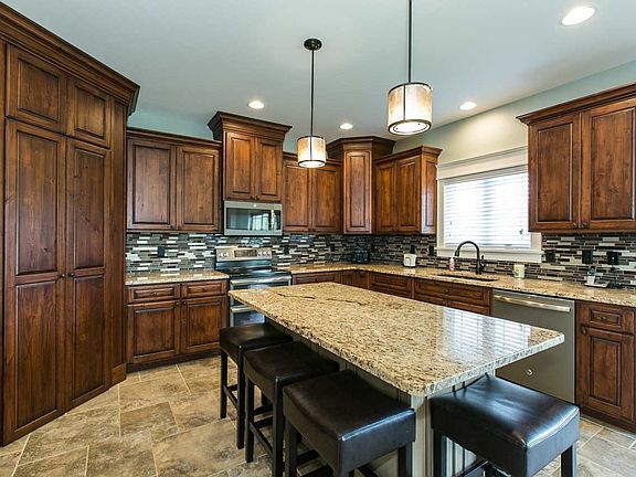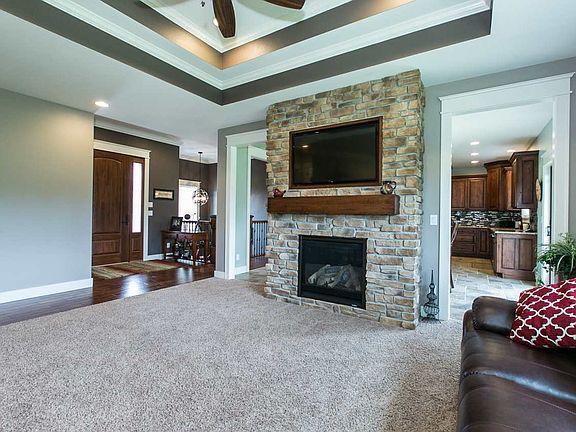 Be impressed with the care and quality of this 'almost new' home has to offer. 5 bedroom, 4 bathroom, custom built features wood floors, custom alderwood cabinetry built by Smith Cabinetry, granite counters throughout, large corner pantry, slate appliances. Beautiful living room with trey ceilings, fireplace, split bedrooms, private master with trey ceilings, whirlpool tub, walk-in tiled shower and large 10x8 closet. Lower level completed 24x19 family room with fireplace, trey ceiling, built-in speaker system, 28x15 plus 14x8 rec/game room, with custom-built Smith Cabinetry bar and kitchen. 12x15 & 13x13 bedrooms. Plenty of storage. Bryant furnace and central air, zoned heating/cooling with heat pump, air to air exchange, and tankless water heater. Exterior walls spray foam with batts. 1300 sq. ft. garage up with 3 doors, single door is 35 feet deep, with garage sink and inside hose. Has 1300 sq. ft. capped garage below with stairs and single door below with gas furnace, second laundry set-up, garage sink, inside hose, and other "man-cave" features. 30 year LP siding. Set-up for Hot Tub underneath a large covered porch attached to the kitchen.