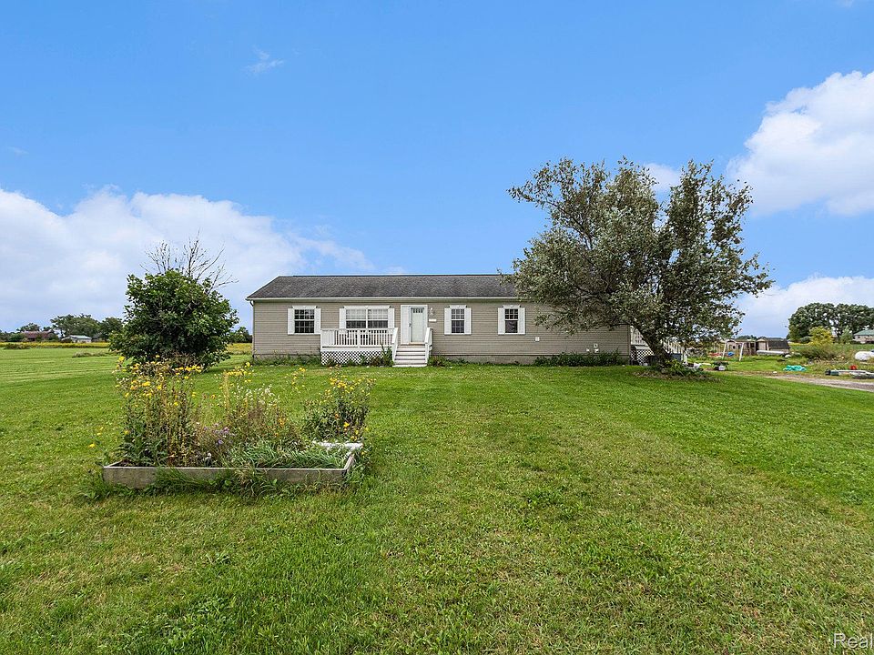 Welcome to your potential Mini Farm. Expansive ranch-style residence situated on a sprawling 5-acre lot with a full basement with tall ceilings. This home boasts three bedrooms and two full bathrooms, a generously sized kitchen with an island, and expansive, unobstructed views of the surrounding farm fields. Owner installed solar system (2 way meter) that really helps with DTE bills. Shipping Container included with house.