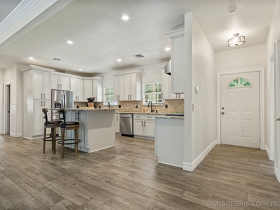 This SUPER SPACIOUS home on 2.5 acres HAS IT ALL; a 20x30 metal shop, storage shed, fenced chicken coop, mature trees, and outdoor living. Newly remodeled kitchen boasts a large center island, custom cabinetry, double sinks, a gorgeous Hallman professional stove with double ovens, convection capability, gas burners, griddle, and a stainless steel vent hood with pull down warming racks. This home would be ideal for multigenerational living with two primary suites, plus a bonus suite with its own entrance on the main floor. There is a large game room, two spacious bedrooms and a full bathroom upstairs. Enjoy nights out on the covered patio, or a beautiful sunrise from your front porch. Oversized attached garage.