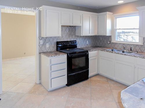SCHEDULE A SHOWING ONLINE AT: showmojo.com/lh/7a45d34048 This home is an open and spacious 3-bedroom 2-bath ranch...with updated paint on every wall and ceiling, carpets, tiled bathrooms and entry way, kitchen and dining room, and all doors. The large great room features a brick fireplace and sliding doors to the patio.The kitchen has loads of storage and counterspace and eating area...just steps away from the laundry closet. Nice master suite with private bath. Two additional bedrooms and big hall bath. Unfinished basement for storage and oversize double garage. Fenced yard with mature trees. Close proximity to Garmin, Olathe Medical Center, neaarby schools, park, shopping and restaurantsThis is a true single-level home with all living space, garages and laundry on the main floor, and a level lot. AVAILABLE: June 1st LEASE TERM: One or more years PETS: Small dog considered ROOMS: Great Room 26 x 19 Dining Room 14 x 9 Kitchen 12 x 9 Breakfast Room 16 x 8 Master Bedroom 15 x 15 Bedroom 2 11 x 11 Bedroom 3 11 x 10 Please see all of our current listings at www.RentalHomeKC.com Application Fee: $35/Adult Non-Refundable