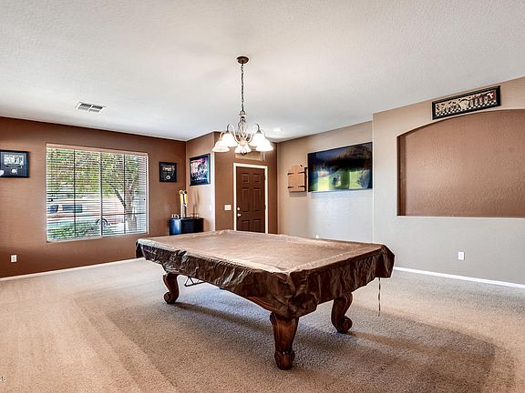 Welcome to this Spacious, well cared for 3 Bedroom plus Den single level home. Enter the Formal Living and Dining Room currently being used as a Game Room, continuing on to the Large Kitchen with a plethora of cabinets and counter space including a large island, black stainless steel appliances installed in 2018. Off the Kitchen are the secondary bedrooms, laundry room and bathroom with dual sinks. Past the Kitchen and Family Room is the Den with double doors continuing on to the Owner's Suite, where the Bathroom has a separate jetted tub and shower, linen closet, and walk in closet. Maintenance free backyard with artificial turf putting green for lots of fun. Come view this one owner home and make it yours today!!! Includes a 1yr Home Warranty