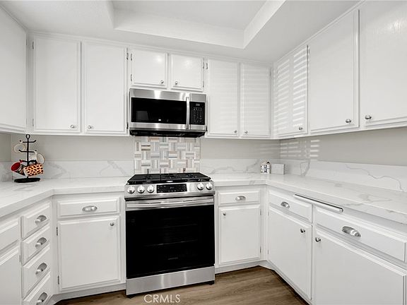 For Lease! Beautifully remodeled single-story, home with no stairs and no one above, featuring 2 bedrooms and 2 bathrooms in the lovely La Mirada Landmark 55 and over adult active community! This home is complete perfection! With vaulted ceilings and recessed lighting throughout. New flooring, updated bathrooms, a walk in closet and saftey grab bars located in the master bath! Enjoy a bright, open floor plan with new appliances, washer, dryer and refrigerator included, and a water softener system that is maintained monthly for added comfort. Walk in to the beautifully remodeled light and bright kitchen, to make a special meal or a cup of coffee! Enjoy two private patios, one in front of your home and one off the master bedroom! Convenient parking right in front of the unit, and a detached garage steps an away from your home making everyday living easy. Enjoy all the amenities this community has to offer including a 24 hour guard, tennis courts, pools, spas, a gym, library and so much more! Located minutes from award winning golf courses, restaurants, and great shopping! This move-in ready home offers modern finishes and thoughtful up-"grades in every detail truly must-see!
