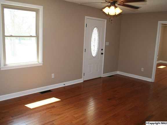 For more info: call Kim Hodges 256-777-3375 Crye-Leike Realtors. 5.8 Acres. Great Mini Farm, bring your horses. Stocked pond. Home has been updated with new hardwood floors, Kitchen cabinets, tile in wet areas paint new doors, hardware and fixtures. Isolated Master. There are two living areas, a living room and a Family room, Family room over looks Kitchen. Large Laundry room in basement area. 26x12 Deck, and a 15x6 Covered front porch. Circle drive, and a one car garage. Pasture area and pond fenced.