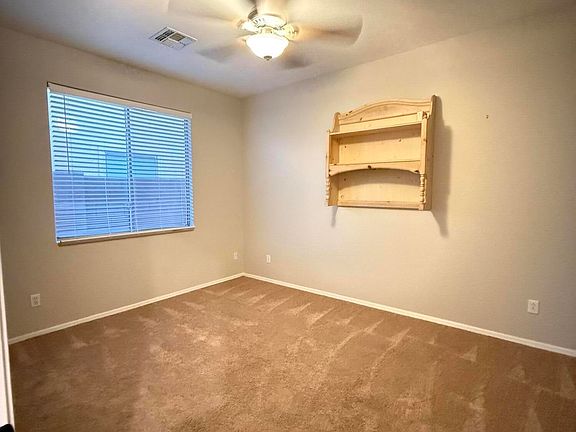 Beautiful home with desirable north/south exposure, two-tone exterior paint, and a durable tile roof! Step inside to a spacious tile entry leading to the kitchen, halls, and bathrooms. Enjoy the popular split floorplan with new neutral carpet. The open eat-in kitchen features a breakfast bar, stainless steel dishwasher, and microwave, flowing seamlessly into the great room. The main bedroom offers a private bath with double sinks, soaking tub, shower, and a walk-in closet. Relax outdoors on the covered patio with pavers and mature trees. Solar energy provides low electric bills. Perfect location near restaurants, shopping, parks, schools, and entertainment!