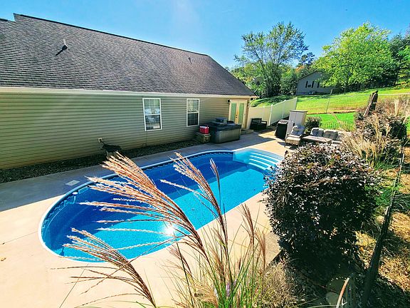 Beautiful rancher built for entertaining. You will love this 3 bedroom, 2 bath home with a large open living room and Cathedral ceilings. Fenced back yard with an inground pool built for entertaining guests. Plenty of concrete for outdoor furniture and back yard BBQs. Hot tub and woods behind the house for privacy. Storage shed for pool supplies. Many updates including kitchen cabinets with granite counter tops, both bathroom vanities with granite tops, Bamboo flooring throughout, Laundry room, pantry, an attached garage and detached carport. Enjoy outdoor activities with 2 lots and an acre of land. Seller has created your private outdoor oasis with a privacy fence, pool, hot tub and plenty of concrete.