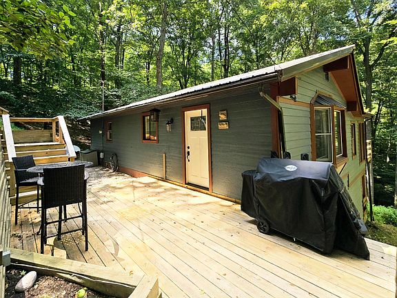 Beautifully updated 3 bed/3 bath cabin in Hide-A-Way Hills. Cabin is private and secluded yet conveniently located close to the main entry gate, boat docks and beach. Spacious, open concept living areas on main level offer sitting area, dining area, well appointed, large kitchen with breakfast bar and huge sunken living room with walls of windows. Relax and enjoy nature and the gorgeous ravine views on the large screened in porch and front and rear decks. Two bedrooms, both with full bathrooms and a third full bath round out the main level. Lower level offers additional living space, third bedroom and laundry/utility room. Don't miss out on this great opportunity to live in this HAH-mazing community!