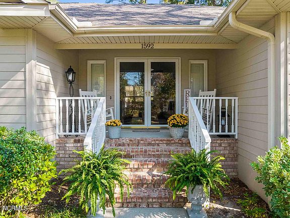 IMMACULATE One story home in the gated golf course community of Brick Landing, just minutes from the sand and surf on Ocean Isle Beach. The Split floor plan has two bedrooms on one side with a gorgeous, remodeled bath that includes a walk-in shower with tile seat. You can close this side off with a pocket door allowing for extra privacy. The large primary suite on the other side of the home includes a sitting area, vaulted ceiling, access to the screened in porch, ensuite bath with jetted garden tub, updated walk-in tile shower, dual vanities, a private water closet, linen closet and large walk-in closet that even has a laundry chute door. The gourmet kitchen has soft close oak cabinets and drawers with pull out trays, updated stainless appliances, backsplash and marble counter tops. A formal dining room could also be an office with built in cabinets and barrel ceiling. You will want to spend most of your time on the large screened-in porch that looks out on the beauty of the backyard. There you will find a winding walkway, swing, fire pit, patio, beautiful mature landscaping which includes azaleas, camellias, hydrangeas, and gardenias. The deck has a propane outlet for your gas grill. Irrigation system, 2 HVAC systems and 2 Hot Water Heaters. Don't miss the walk-up storage in the large 2 car garage. Ride your golf cart to the large lap pool, kiddie pool, hot tub, tennis courts, to play a round of golf or to eat at the restaurant on the Intracoastal Waterway. You are close to numerous golf courses, boat access, Ocean Isle Beach, Sunset Beach and a 40 minute drive to Wilmington or Myrtle Beach.