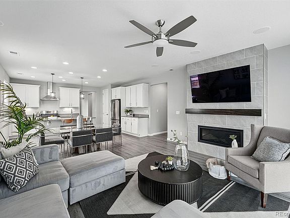 Welcome to your immaculately-maintained and nearly brand-new Castle Rock home with 3 bedrooms, 2 baths, plus a flex/office space. A large, attached 3-car garage also provides plenty of space for vehicles and storage. Infused with natural light, the home features three additional windows installed by the current owners. Even more upgrades can be found throughout, including quartz countertops, soft-close kitchen cabinets and doors, high-end appliances, 9-foot ceilings, a built-in surround sound system, automatic blinds, gas fireplace, walk-in closets, and a luxurious European shower with rainfall shower head. An auto keypad lock on the front door can be controlled with your smartphone, as can the garage doors. A robust ADT security system and cameras are already in place for peace of mind. Additional features include upgraded insulation, a large crawl space, and a recently cleaned HVAC system. The home sits on an expansive, west-facing corner lot to capture the warm evening light. Downtown Castle Rock is a quick drive, as is Castlewood Canyon State Park and miles of trails for you to explore. A must-see!