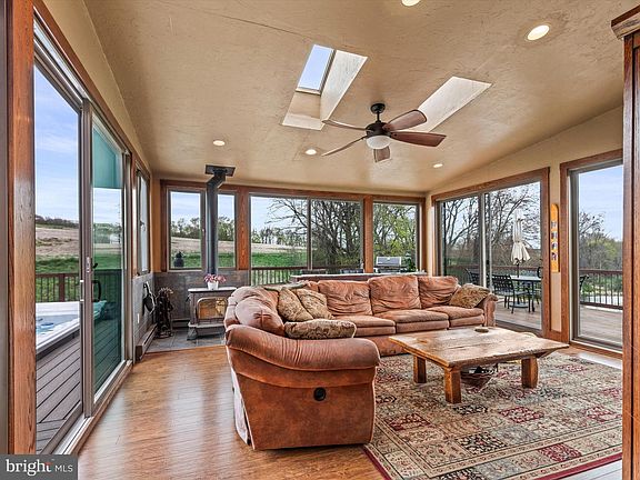 Welcome to this charming property nestled in Spring Grove, PA, offering 43 acres of space along with a farm house, carriage house suite, and a barn to meet all your needs. This property is adjacent to Codorus State park, which includes a large recreational lake for fishing and boating. The rustic charm of the farm house shines through its three bedrooms, two full bathrooms, powder room, sunroom, and a cozy third-floor bonus room. The primary bedroom serves as a tranquil retreat with a luxurious bathroom featuring a soaking tub and glass stall shower. Designed to connect you with nature, the sunroom leads to a wraparound deck with a spa for year-round relaxation, a BBQ area, and outdoor shower, and a patio area below. Adjacent to the farm house, you'll find a pond for summer enjoyment and a barn. The three-car garage includes a studio in the lower level, and a carriage house on the upper level, complete with a kitchen, dining area with vaulted ceilings, a powder room, a living room with a fireplace, and a bedroom with an attached bathroom. Don't miss out on the opportunity to own this piece of paradise - schedule your showing today!