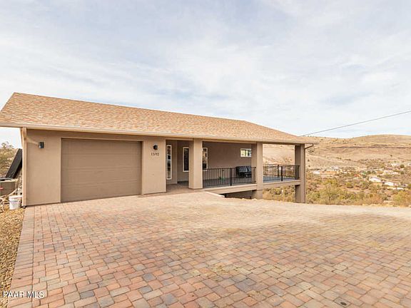 Fantastic newer built home surrounded by Mountain views & charming front porch entry. Warm & welcoming palette, handsome engineered wood floors throughout, upgraded lighting/ceiling fans, & outside access from dining area. Stunning chef's kitchen features a center island, gorgeous guartz counters, breakfast bar, pendant lighting, & plenty of gray cabinetry w/crown moulding. 3 Bedrooms, ample closets, 2 upscale baths, & interior laundry room. Barn door entry into private master en suite w/dual sinks. Enjoy the desert & Mountain view from your deck. the backyard is waiting for your personal touch! Lovely private setting. Take a tour today!