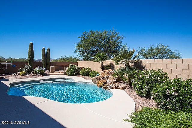 UPGRADED, Laredo model w/a Pool, Spa & a Fire Pit w/sitting area. Split Floor Plan w/2 Bedrooms, 2 Baths, Den & a Large Great Room. Tile flooring thruout, except the Den which has wood flooring. Den also has doors at entry, so it can easily be used as an additional Guest Room. Plantation Shutters in the Kitchen, Den & Guest Room. Ceiling Fans thruout. The Kitchen has Granite Counters, Gas Range & R/O. The Master Bedroom is quite large & has a walk-in closet w/Built-in's. There is a slider to the screened-in porch from the Master. Extended 2 Car Garage has Built-in Cabinets, upgraded utility sink & entrance to after-market Golf Cart Garage, which is on the right side of main garage. Can access backyard from Golf Cart Garage. Windows replaced 2012, New roof 2013 & New PVC Drip System 2015.