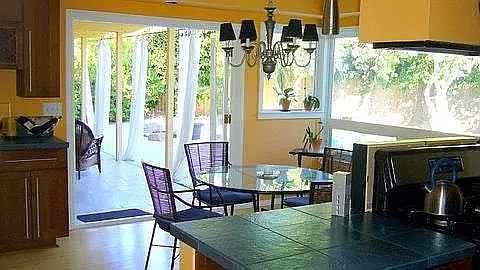 A converted garage, currently used as an office is fully furnished with 2 full desks and all standard office amenities. It can be your 3rd bedroom when extra guests, a Futon and it has its own bathroom, closets and kitchenette. Or if you rather have your car parked inside, it does allow or is a 2 car garage when office furniture moved out.