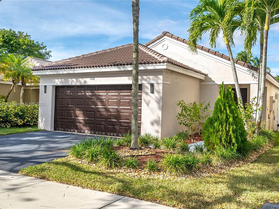 Step inside this beautiful home at 1592 Salerno Cir and feel the comfort right away. Freshly painted inside and out (2025), the home has that clean, modern look everyone loves. The layout is open and bright, with three spacious bedrooms, two baths, and welcoming living areas that feel warm and inviting. Located in one of Weston's most sought-after communities, you'll enjoy a peaceful, family-friendly atmosphere, a great community pool, and easy access to parks, shopping, dining, and major highways. The area is also known for its top-rated schools, making it a great choice for families. The garage door, sprinkler system, and lighting can all be controlled by Wi-Fi for added convenience. Perfect blend of comfort and style, easy to show on lockbox.