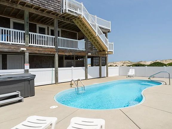 HOW OFTEN DO YOU SEE AN 8 BR Home with OCEAN FRONT type INCREDIBLE VIEWS? Well, you can get that AND with FANTASTIC rental performance NOW! Being this Semi-Ocean Front home is only 3 MI up the beach from the pavement makes it super easy to access in minutes once off pavement! Not only do you have OCEAN VIEW but also SOUND VIEWS! This stoutly built, classic cedar shake beach house has so much to LOVE about it! Quality abounds! From the fine cabitnetry to the smart, clean furnishings.....to the several en-suites for guest comfort to the expansive amenity list to keep everyone busy and happy....."HORSE INN AROUND" in the Four Wheel Drive accessed area of Corolla has it all! Make an appointment to see this wonderful home today! Owner maintains the property very well.....recent efforts include a new pool fence, some newer appliances, newer HVAC systems, power washing and more! Between a fanstastic prop mgmt effort and a care taker on top of that nothing gets missed so to insure your beach vacation guests and/or you, as the owner of this home, are more than happy when enjoying just "Horse Inn Around" here in the wonderful OBX!! The 8 BR's mean fine rental performance! Take a look at the OCEAN VIEWS....and know due to being off the actual front you have little to be concerned about with larger storms. Have the best with 8 BR translating to big income without the worries of ocean front erosion and maintenance issues.