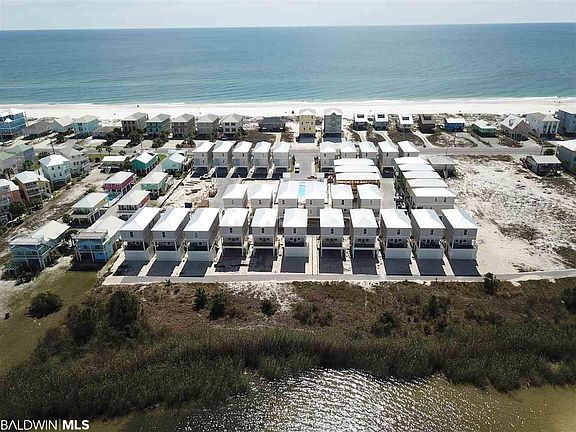 Nicely furnished direct lagoon view 3 BR/ 4BA single family cottage at West Side Cottages. Fortified Gold Standard and built with expert craftsmanship. Beach access provided via city boardwalk along side of Little Lagoon and the Little Lagoon Pass Park and Pier. Directly across the street from the beach. Private Balcony facing the lagoon, 10’ Ceilings on first level, 9’ on the second level. Cement Board Exterior Construction w/26 Ga. Metal Roof. Interior Finish Includes 3 cm Granite Countertops Throughout, A Shiplap Wall & Crown Molding in Living Area. Solid Plank Flooring Throughout, Kitchen Includes Custom Cabinetry, Tile Backsplash, Stainless Appliances including Side by Side Refrigerator & Full Sized Washer & Dryer. Custom Tiled Shower with Glass Doors & Tiled Surround/Cast Bathtubs. Resort Style Community Pool w/ Restroom. Brick Paved Streets. Environmentally Friendly Landscaping & Lighting. Excellent short term vacation rental! This listing is Lot N 3BR/4BA Lagoon Front.