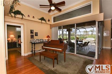 This gulf access home in Catalpa Cove was built for entertaining! The main living spaces overlook the pool and the extended patio area. The split floor plan includes 3 bedrooms and 3 full bathrooms, office, formal living and dining rooms, and a kitchen with granite and SS appliances which opens to the family room. Features include volume ceilings with crown moldings throughout, recently added bamboo flooring, new pool cage, outside cooking area with bar counter and a spacious patio area with paver decking. Catalpa Cove has a community park with cabana, tennis courts and children's playground. This home is situated on the canal with boat dock directly behind the home. See the photos and virtual tour to get a first look at this meticulously maintained waterfront home. Brokered And Advertised By: Amerivest Realty of Lee Island Coast Listing Agent: Millie S Dinkel