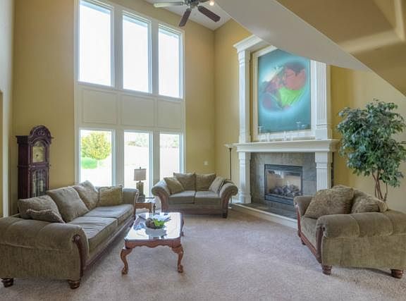 - Features: Carpet, Ceiling Fan(s), Fireplace