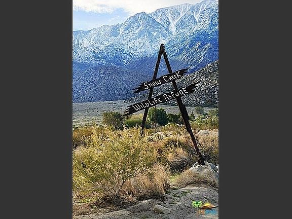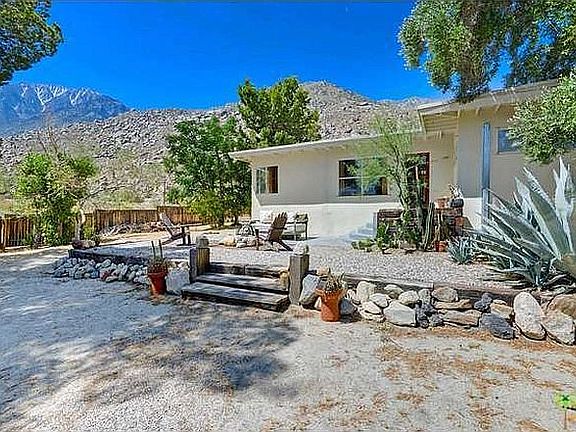 Just 10 minutes from the Modern Mecca of Palm Springs tucked into a private cove of olive groves and architecturally interesting homes at the base of Mt. San Jacinto is the charming village of Snow Creek. This artists' community is 10 minutes from the glitz and glamor of Palm Springs yet feels like a world away. 1948 2bedroom/2bath bungalow is the perfect getaway or full-time residence. Calm and quiet with few distractions and epic views to inspire, it's the perfect launching place to explore Joshua Tree, Mt. San Jacinto, outlet mall shopping, world class hiking (the Pacific Crest Trail runs through Snow Creek), and, of course, Palm Springs. The large fenced yard is totally private with no immediate neighbors in sight. The home has four new ductless AC/heaters, a newly remodeled guest bath, irrigation, updated landscaping, two private patios, a rear view of one of the tallest vertical cliffs in North America and a front view of windmills and twinkling city lights by night.