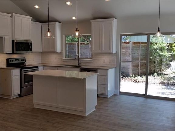 ALMOST NEW CONSTRUCTION in private and tree filled location just 2 blocks from Lake Travis and usable boat ramp! UPGRADES throughout including solid surface floors (LVP), quartz counters, island kitchen, custom cabs/drawers, vintage lighting, 10's ceilings in living and mst bd, indoor utility rm, excellent storage, garage door opener! private & fenced back yard! Owner/Agent