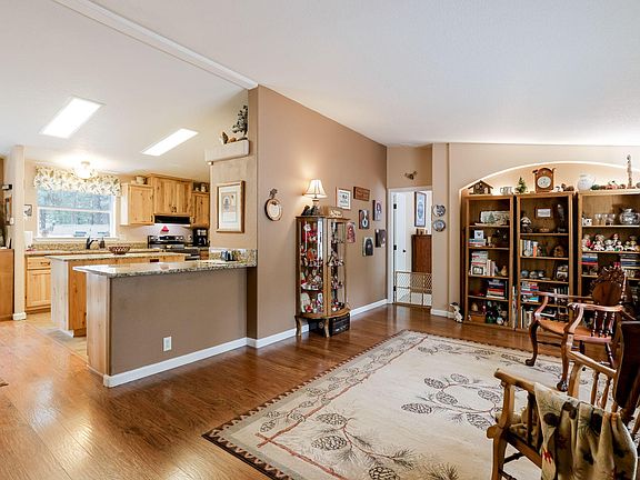 This beautifully updated spacious 3-bedroom, 2-bath manufactured home offers 1,707 sq ft of comfortable living space on a fully fenced, private one-acre lot—perfectly located near all the outdoor recreation Central Oregon is known for. Step inside to a warm and inviting interior featuring wood and tile floors, a spacious great room layout w/ both a formal living room & family area, primary bedroom separation and a kitchen that truly shines w/ granite countertops, hickory cabinets, a large center island, plenty of counter space, and newer appliances—ideal for home chefs and entertaining. Outside, enjoy a relaxing backyard, complete with plenty of shade for summer gatherings. The property also includes a detached double-car garage, RV cover, and ample room for all your toys, animals, or gardening dreams. Whether you're looking for a peaceful full-time residence or a weekend getaway, this home offers the best of both worlds—comfort, space, and access to nature.