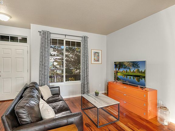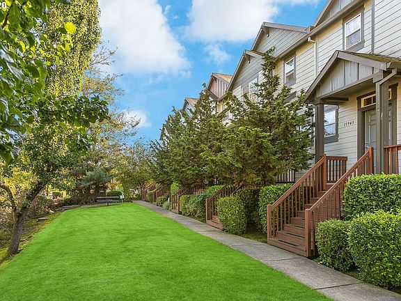 Renovated townhouse has it all w/$30k in recent updates! Open Fl living w/gas FP, 9' ceilings. Covered front porch, balcony. New wood floors & paint, kitchen, island & dining hutch/bar w/modern hardware, quartz counters & SS appliances. Remodeled bathrooms w/new vanities, mirrors, lighting & flooring. 2-car attached garage, Central AC. Ensuite Master, vaulted ceilings & laundry. Bonus/storage room. Location- Nike/MAX/shopping! No Assessments! Check out the 3D Tour & Floor Plan! A must see!