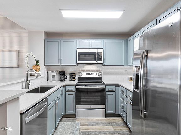 Priced to sell! This gorgeous 3-bedroom, 2-bath condo with spacious balcony at Calypso Tower III is one of the best luxury condo buildings in PCB, a must-see. Enjoy west-facing views in a stylish, coastal-inspired space with upgrades like shiplap accent walls, a sleek sidebar, & custom bunkbeds, quartz counter tops just to name a few things. Calypso III provides a resort experience with a seasonal heated pool, hot tub, fire pit, two tiki bars, and 9 rentable cabanas to enhance the resort pool experience. The fitness center & on-site restaurant make everything super convenient for you and your guests. Located in one of Panama City Beach's best spots, this condo is within walking distance to Pier Park, upscale shopping, and brand-name stores, with Top Golf coming soon. The spacious balcony is a perfect place for views & best seat in the house for fireworks. Year-round events in PCB make this a top destination! Put this one on the list to see!