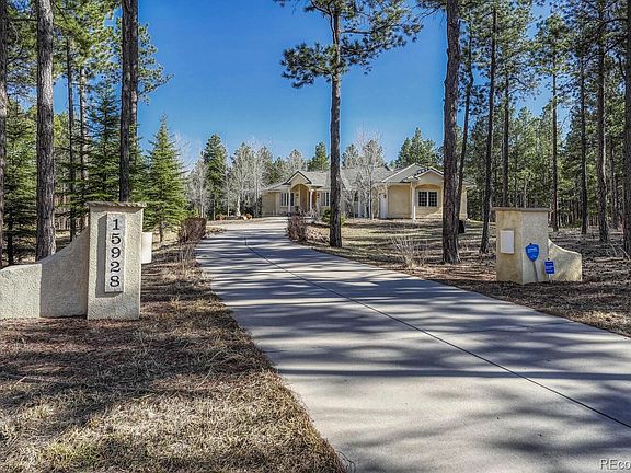 A spectacular and rare opportunity awaits you with this custom walkout ranch-style home located in the desirable gated community in the Black Forest Reserve. Beautiful natural setting with a circular driveway, amazing ponderosa pine trees on 2.7 acres and miles of hiking & biking trails. The architectural details are outstanding. The interior entry is bright with tall ceilings, grand windows and beautiful floors that greet you with the warmth and quality that carries throughout the home. The master bedroom has a fireplace and a completely custom master closet that is sure to please! Master bath retreat comes with a steam shower, large soaking tub and heating floors. Dinning room and office both have beautiful tray ceiling and large bay windows. Large open living room with fireplace, surround sound on main floor, amazing windows and walk out access to the large deck. The chef's kitchen features a gas range, stainless steel hood, double ovens, large island with microwave, an oversized refrigerator and an amazing walk-in custom pantry. Sliding glass doors in the kitchen and living room open to the large deck area to enjoy the outdoors. Double wrap around staircases that takes you down to the ground level to an outdoor sitting area that overlooks the backyard. In the finished walkout basement you will find tall ceilings and a large family room area with a fireplace and wet bar. 3 large bedrooms, two full bathrooms with heated floors, laundry room, large climate controlled wine cellar, and a fantastic home theater with french doors. This home is truly built for comfort and entertaining!