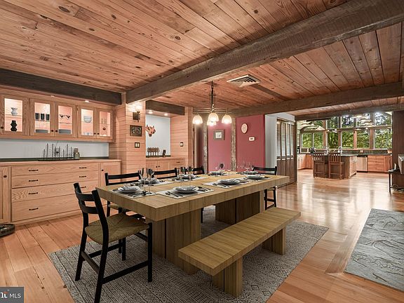 - Kitchen Island, Dining Area, Eat-in Kitchen, Primary Bath(s), Entry Level Bedroom, Upgraded Countertops, Wainscotting, Built-in Features, Chair Railings, Open Floorplan, 9'+ Ceilings, Beamed Ceilings, Cathedral Ceiling(s), Vaulted Ceiling(s), Wood Ceilings, Wood Walls, Dry Wall