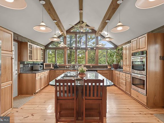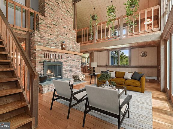 NEW PRICE $940,000- Sellers have just refinished the hardwood floors on the first level, replaced the carpeting in all 3 bedrooms and replaced the floor in the lower level bathroom. This contemporary barn style home sited on 1.4 private acres on a quiet street in the desired Daisy Hill Estates community. This spectacular home offers primary first level living, highlighting a two-story ceiling, rustic exposed wood beams, stained glass window details, and original wide plank semi hard pine flooring. Floor to ceiling windows and glass doors to the deck allow abundant natural light in the living room that showcases a two-sided brick fireplace shared by the dining room detailed with custom built-in shelving and wine storage. Under a high cathedral ceiling, the kitchen features a large island and breakfast bar with a prep sink and electric cooktop, granite countertops, and stainless appliances. Conveniently located and with a second private entrance, the main level, primary bedroom suite has its own sunroom and en suite bath with two vanities, a jetted tub, and an oversized shower. Ascend the staircase through the living room to three sizable bedrooms, a full bath, and a loft overlooking below. The lower level offers a perfect guest suite that includes a bedroom with sliding door access to the backyard, a full bath, a spacious family and game room, and plenty of room for storage. With room for a swimming pool, you’ll enjoy outdoor living in the fenced, level backyard around a firepit or on the wraparound Trex deck. And for added convenience and storage, there’s a 2-car detached garage with an attic and a large storage shed. Don't wait to own this truly unique home!