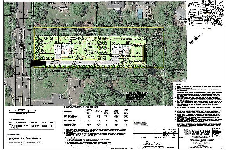 Two wooded lots approved by Franklin Township for two single family homes and have been recorded in Somerset County. Lot 19.01 is a 30,000 sq ft front lot, Lot 19.02 is a 20,000 sq ft flag lot. Lots are to be sold as a package for construction. All utility connections (gas, water, sewer and electric) have been made and brought to the curb. Site plans and architectural drawings are done. Lots will be delivered with zoning department approval. Just apply for Construction permits and start building. All utilities are available on Amwell rd. Documents available upon request.