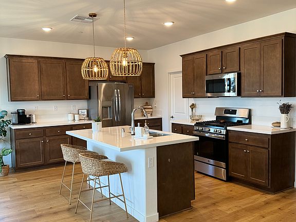 This single story beautiful home for rent in the new ATWELL Master Planned Community features 2 bedrooms, 2 bathrooms, 2 gar garage with an open floor plan. New upgraded flooring throughout, upgraded appliances, Microwave, Stove/Oven, Dishwasher plus Washer and Dryer hookups. Has fully fenced backyard with a concrete patio, low maintenance backyard. Plus, this house includes Solar for electric savings. This beautiful home also provides access to nearby community parks, walking trails, streams and waterfalls plus community swimming pools, playground, barbecues and activity center, all in walking distance. This home will be unfurnished and available for move in November 15, 2024. This is a 12 month Lease and Renter is responsible for all utilities except internet. HOA rules must be followed - violations are the responsibility of the tenant(s).