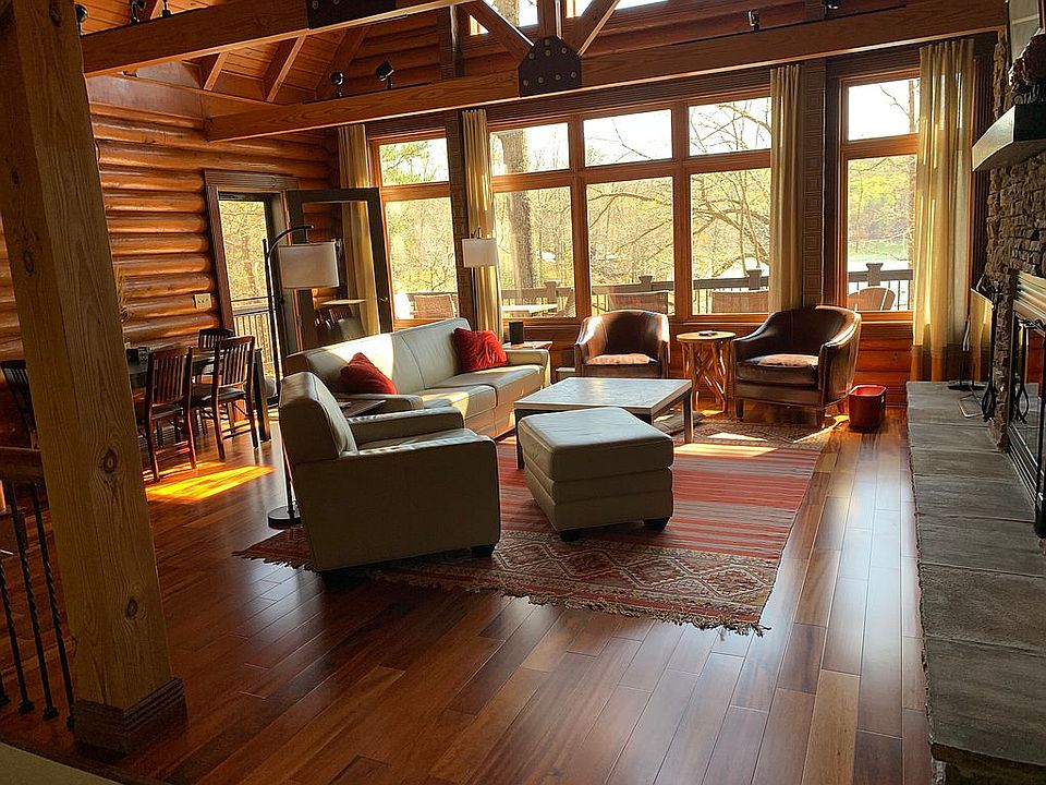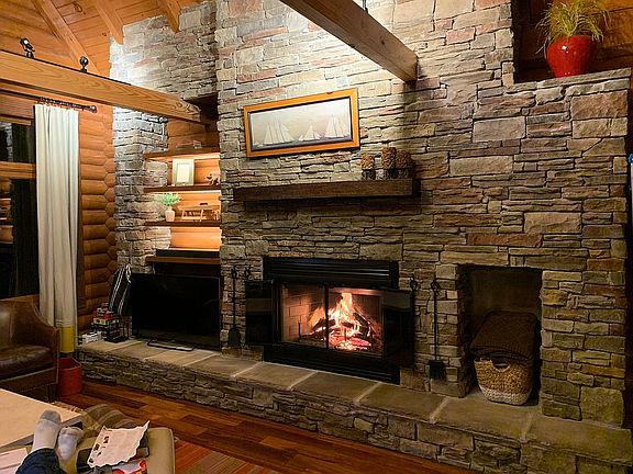 Amazing 3 Bedroom 1 & a half bath custom log home situated on a .8 acre lot with year around water. Professionally decorated with quality flooring, counters & upgraded appliances, barn doors, screen porch, huge stone fireplace & lots of deck space. Concrete path or steps to the lake lead you to your 2 slip covered dock with 2 boat lifts. Dock has a 1/2 covered concrete swim platform integrated and underwater structural support. Additional 4 foot section added to the opposite side of the swim platform to enhance to cove swimming. I have added concrete runners for the dock wheels and an extension of walkway to help stay out of the mud when the lake levels are at their lowest. I have had discussions about traditional bedrooms, and my thought on the matter is that lake houses are not like traditional houses. What are your congregating areas like? Upper deck, lower screened in porch, open area concept in the living/dining area, big expansive dock with plenty of dock furniture, and a big cool rock firepit area. Literally people don't come to the lake to have an enclosed big bedroom with master bath and walk in closet coolness, but that is what we want in our traditional homes. Sleep is done in a blink of an eye, concentrate your efforts on what you are going to enjoy while you are awake. I have had houses both ways and the choice is spend a lot more money, and most likely don't have any meaningful upgrades in congregating areas but for the few moments you are awake before falling asleep you can have a little more privacy/luxury, or we make sleeping work, and for my efforts I get a super easy driveway, open water views within a cove (much better for cove swimming/hanging out), minimal steps to the dock (which is absolutely huge), awesome neighborhood and neighbors. See how awesome a 1.5M dollar home is when you have to go 50-75 steps back up for something you forgot, or hop back in side by side everytime you want to go back and forth, but if you have 4-5 bedrooms and only 1 side by side how does that work? I have lived it, it is frustrating. Life on the lake for normal working folks is about what compromises you can live with. If the supercool master bedroom is a must have, you can easily put a second level on the garage and the house is laid out such that it would perfectly tie in by the existing 1/2 bath and it could be one of the coolest master bedrooms out there with windows along the cove in the trees and windows looking to the open water, it would be a very dramatic effect for minimal added cost. Don't overlook this gem.
