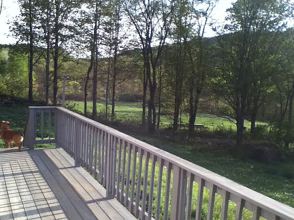 This 9 year old two story colonial home features a quiet setting with gorgeous views. Located on 10 acres of maple hardwood and meadows with established organic vegetable gardens, berry bushes, garden shed, and chicken coop. You will have the best of both worlds living on this town maintained country dirt road with no through traffic only 3 miles from the village of Poultney. You will have access to Green Mountain College and Castleton University, the Lakes Region and ski areas are a reasonable drive away. Features include an open floor plan with a vaulted ceiling in the living room, lots of light, and a passive solar design with low E glass windows. The three heating systems include a Buderus wall hung propane boiler, an EKO Orlan 25 high efficiency wood boiler, and a wood stove hearth on the first floor. Maple hardwood floors and ceramic tile downstairs and carpeting upstairs. Huge full attic. Walkout finished basement with family room, game room, bathroom and shop with radiant heat in the slab. Front deck, covered side porch, screen porch. Three bedrooms and a bath upstairs. Living room, dining room, kitchen, den, bath, and mudroom with washer/dryer hookup on the first floor. Kitchen includes maple cabinets and stainless steel appliances including a Dynamic Cooking Systems range.