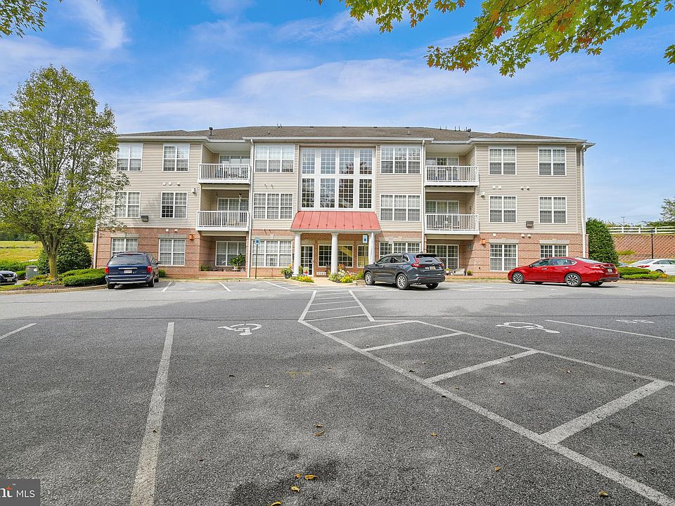Welcome to Homeland in Eldersburg - An age restricted 55+ Condominium Community. This is a 2nd floor 2 bedroom, 2 bath condominium in move-in condition. 9' ceilings throughout and warm natural gas heating and central air conditioning. 1-year new carpeting in both bedrooms and new refrigerator and hot water heater. The large family room has a cozy gas fireplace and an atrium door leading to a beautiful balcony. The kitchen has beautiful hardwood floors-refrigerator-dishwasher-disposal-built-in microwave oven-electric stove and oven. Has a nice size laundry/utility room with a stackable washer and dryer. The large primary bedroom has crown molding, a large walk-in closet with lots of shelving and a full bathroom with ceramic tile floors and a walk-in shower with ceramic tile walls. No need for steps as the condo has level access from the parking area to the lobby with an elevator to 2nd floor. Has a separate storage unit for excess storage. There is a community party room in bldg. #1597 that can be used for special occasions, gatherings and entertainment. Homeland Drive ends in a cul-de-sac with minimum traffic exposure. Conveniently located within 1 mile of many restaurants, shopping, grocery stores, churches, Walmart, Kohl's and the local library. This condominium shows beautifully and is vacant and can settle quickly, if needed.