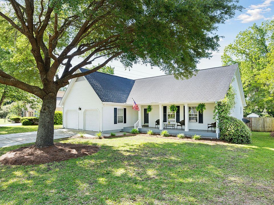 Freshly updated one story home features 3 bedrooms, 2 full baths, 2,173 square feet and excellent location in the heart of South Mount Pleasant. Highlights in the main living areas include smooth vaulted ceilings, updated flooring, paint and light fixtures throughout. Spacious living room includes a gas fireplace and great flow to the dining area, kitchen and sunroom. The eat-in kitchen features painted cabinets, updated appliances, classic subway tile backsplash and large laundry closet. The light filled sunroom is tiled, heated and cooled, offering an excellent bonus flex space that leads out to a patio and large backyard with privacy fence. The primary bedroom is large, featuring double doors, tray ceiling, walk in closet, updated barn door to primary bath.Owners will enjoy large primary bathroom with updated tile, updated double vanity, new fixtures, garden tub and separate shower and lots of natural light. 2 well sized additional bedrooms across the hall can share the full guest bathroom that is updated with tile, new vanity, and new fixtures. Exterior features include lovely curb appeal, full front porch, rear patio, fire pit, oversized driveway and an attached 2 car garage. Walk to Lucy Beckham High School, Mount Pleasant Recreation facilities, private swim and tennis clubs, and more. This floor plan and location combination is coveted and serves all life stages well, offering the best of Mount Pleasant lifestyle and conveniences.
