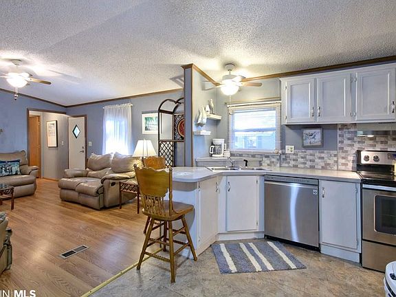 Unbelievable value on this completely turn-key and fully furnished mobile home situated on 2 lots!!! Second lot has concrete pad & covered carport to park all your toys. The shed and the concrete pad both have power to them. Mobile home has great natural shade, wonderful screened in porch, and the HVAC unit, Fridge and Dishwasher are all less than 2 years old. Spanish Cove subdivision offers many amenities including amazing outdoor pool, 2 clubhouses with pier that is directly on Perdido Bay also has a nice sandy beach area. There is a strong Home Owners Association that does an excellent job maintaining the subdivision. There is security patrol and lots of organized activities creating a wonderful community to live in!