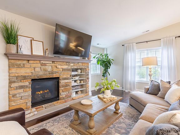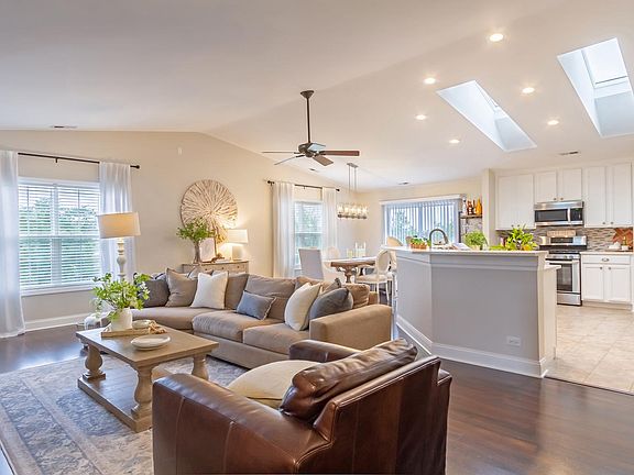 STUNNING open concept 2 bedroom townhome that shows like a model! Everything has been done with nothing left to do but move-in. Dark wood laminate floors throughout. Updated lighting, new doors, baseboards, and window casings throughout. Incredible kitchen with a modern feel boasting 42 inch white cabinets, newer stainless steel LG appliances, beautiful quartz countertops, and a complimenting glass tile backsplash. Convenient walk-in pantry for additional storage. Separate dining area that walks out to a tremendous balcony. The focal point is the beautiful stone fireplace with built-in shelving making it an entertainment center that is truly unique. The generous master suite offers you a walk-in closet and a luxurious private bath that has been completely renovated with a custom vanity and shower, and soaking tub. You will not have a lack of natural light with the abundance of windows, kitchen skylights, and volume ceilings. Amazing location close to shopping/dining and Algonquin Commons, Randall Rd, parks and walking paths. This one will not last so DO NOT hesitate to jump on this great home!
